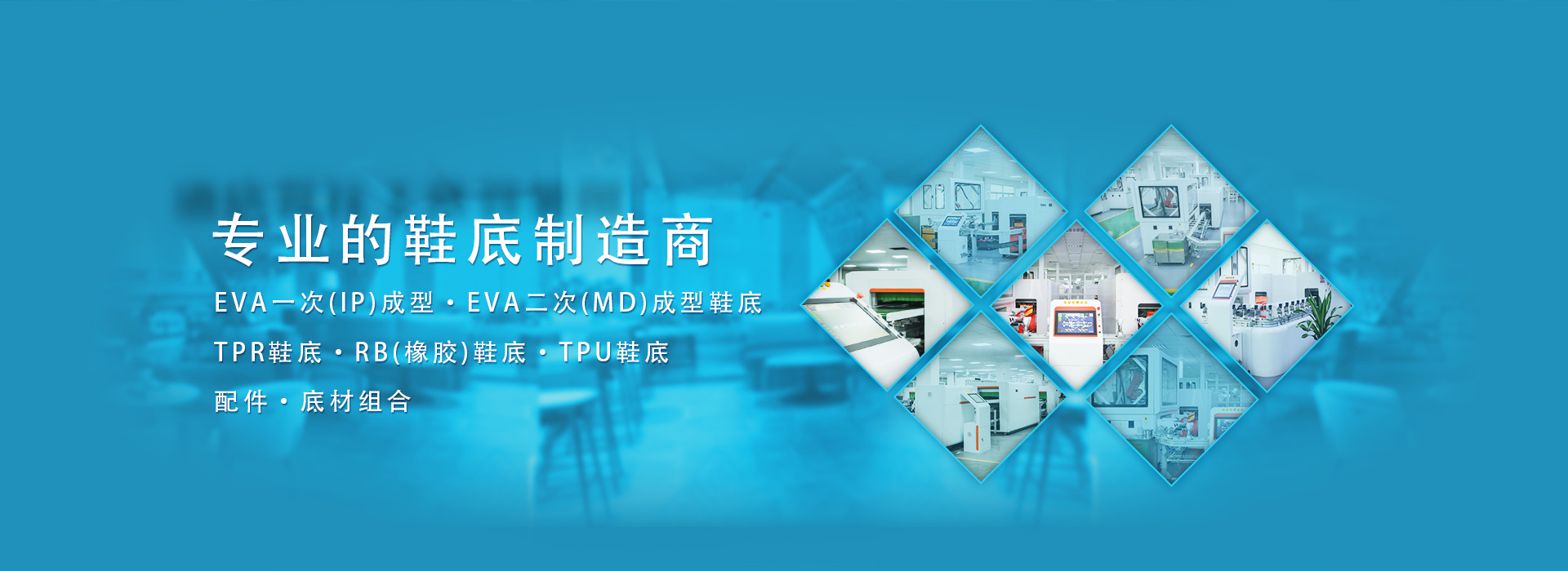專業(yè)生產(chǎn)EVA一次(IP)成型鞋底、EVA二次(MD)成型鞋底、TPR鞋底、RB(橡膠)鞋底,TPU鞋底及配件及底材組合。嚴(yán)格的品質(zhì)監(jiān)控和ISO9001質(zhì)量管理體系的有力保障下,根據(jù)客戶需要,不斷開發(fā)、創(chuàng)新,推出各類新款鞋底。產(chǎn)品除具有國家標(biāo)準(zhǔn)規(guī)定的一般物性要求外,還可根據(jù)客戶要求,生產(chǎn)具有“柔軟、彈性好、減震、耐磨、防滑、抗靜電、抗高壓”等特性鞋底。